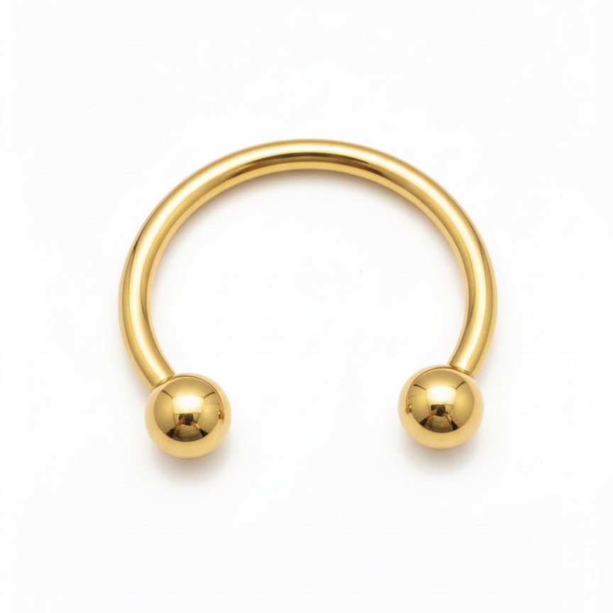 Joyería tipo bull confeccionada en acero quirúrgico inoxidable. Presenta un diseño color dorado de estilo básico apto para diversas perforaciones. Cuenta con cierre a rosca para mayor seguridad y comodidad en el uso diario. Disponible en varios colores y espesores.