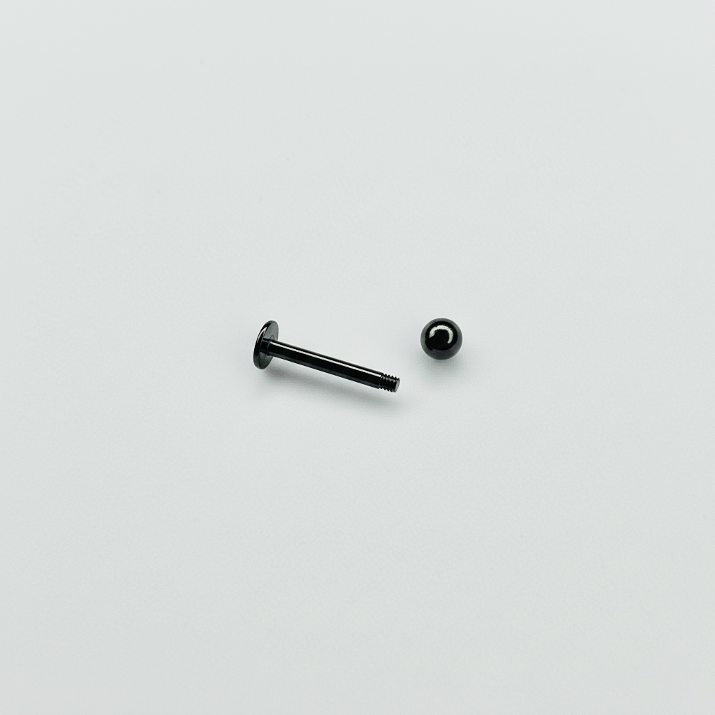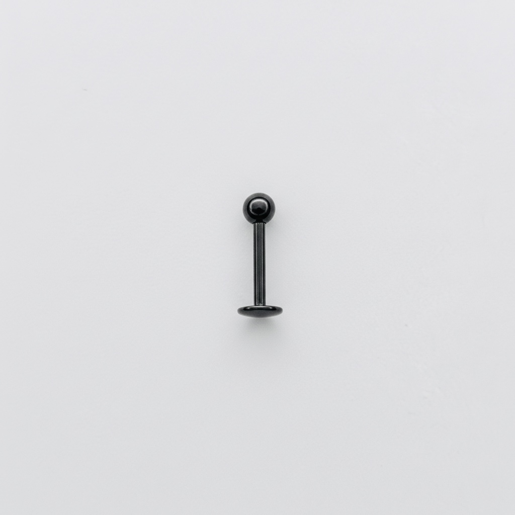 Labret básico negro confeccionado en acero quirúrgico inoxidable. Diseño clásico y versátil de dos piezas, ideal para perforaciones de oreja, labio, trago o cartílago.