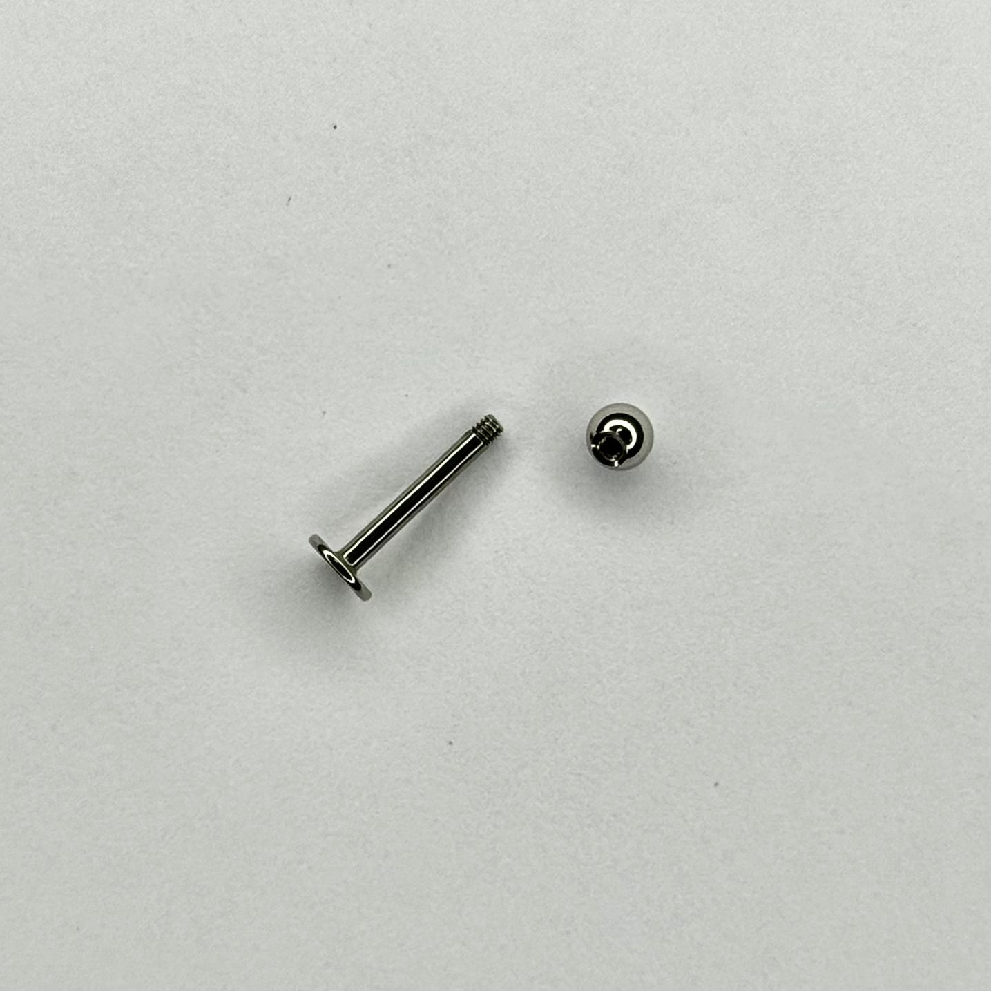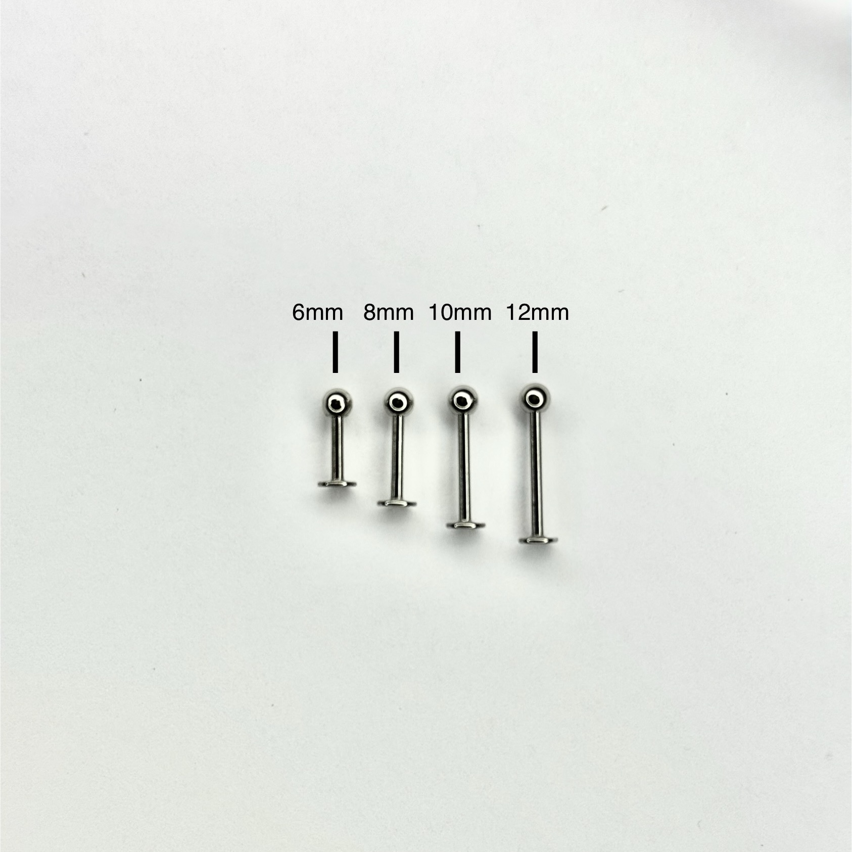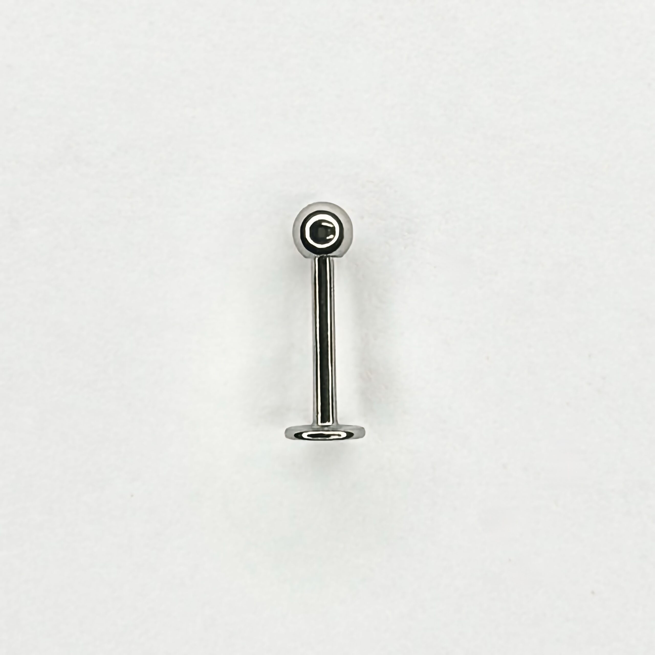 Labret básico plateado confeccionado en acero quirúrgico inoxidable. Diseño clásico y versátil de dos piezas, ideal para perforaciones de oreja, labio, trago o cartílago. Cuenta con cierre a rosca externa y base plana. Disponible en medidas de 6mm, 8mm, 10mm y 12mm.