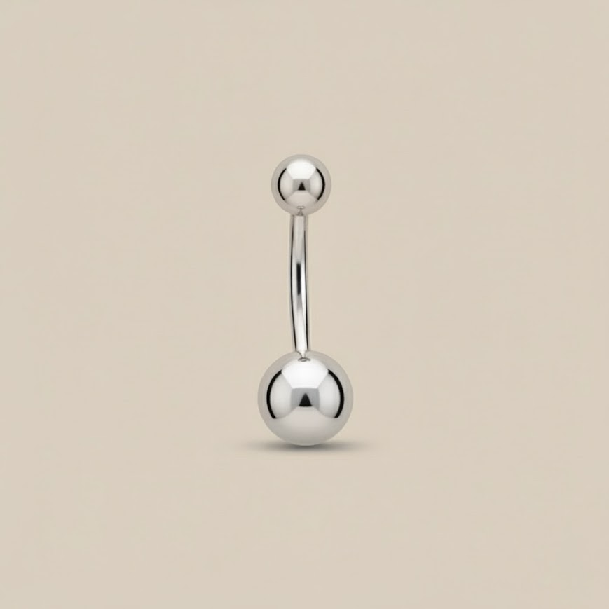 Joyería para ombligo confeccionado en acero quirúrgico inoxidable. Presenta un diseño básico plateado con barra curva. Cuenta con cierre a rosca para mayor seguridad y comodidad en el uso diario.